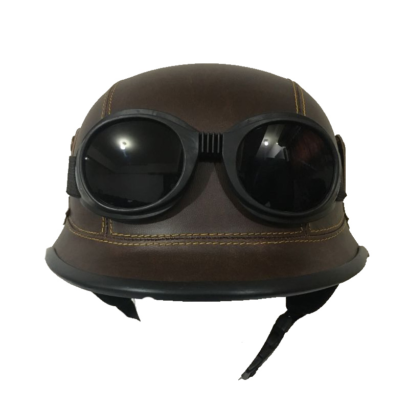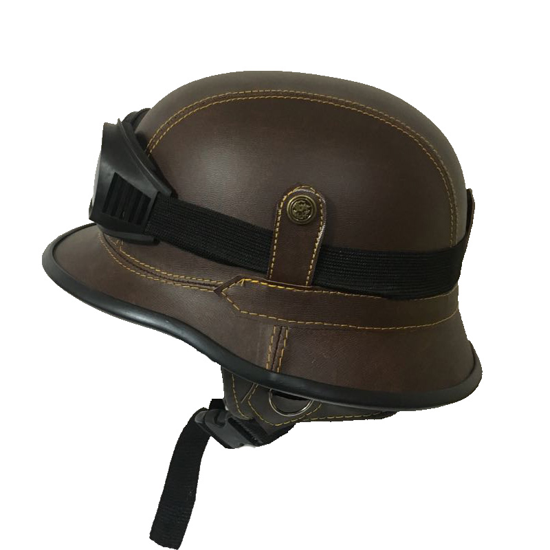 Harley Davidson Leather Helmet with Goggles | German Motorcycle Half Helmet