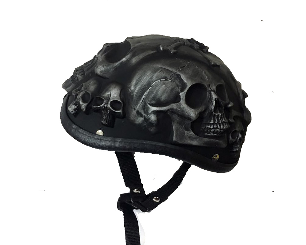 Custom Motorcycle Half Helmet Black 3D Skulls Face