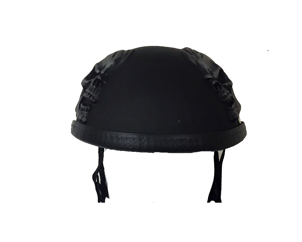Motorcycle Half Helmet with Silver Skulls Faces