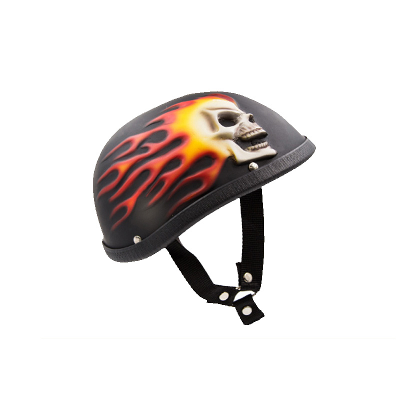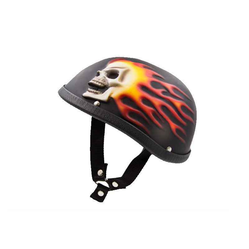 Custom Motorcycle 1/2 Chopper Helmet With 2 Fire Skulls