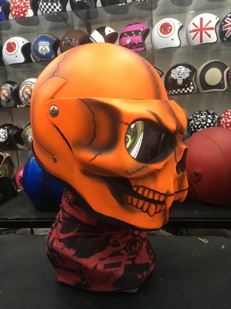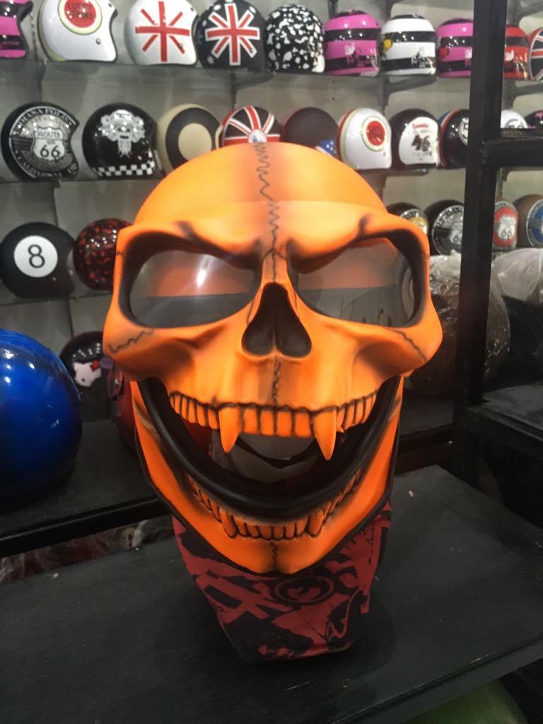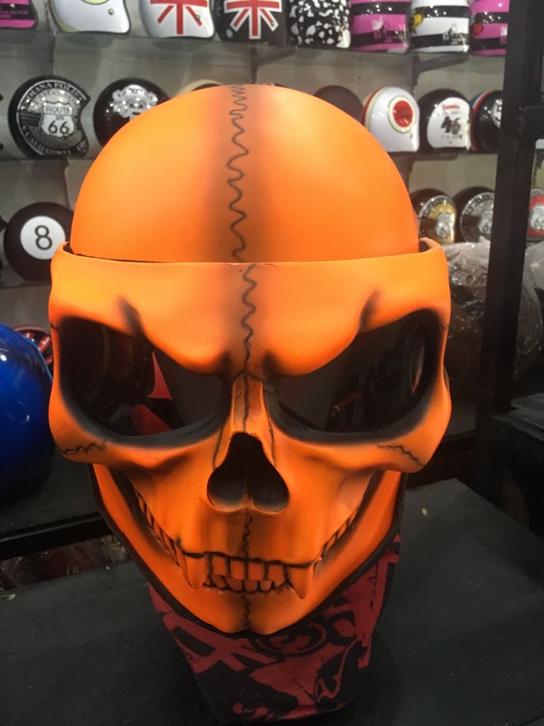 Full Face Motorcycle Helmets Visor Flip Up - Orange Skull Skeleton Ghost Rider