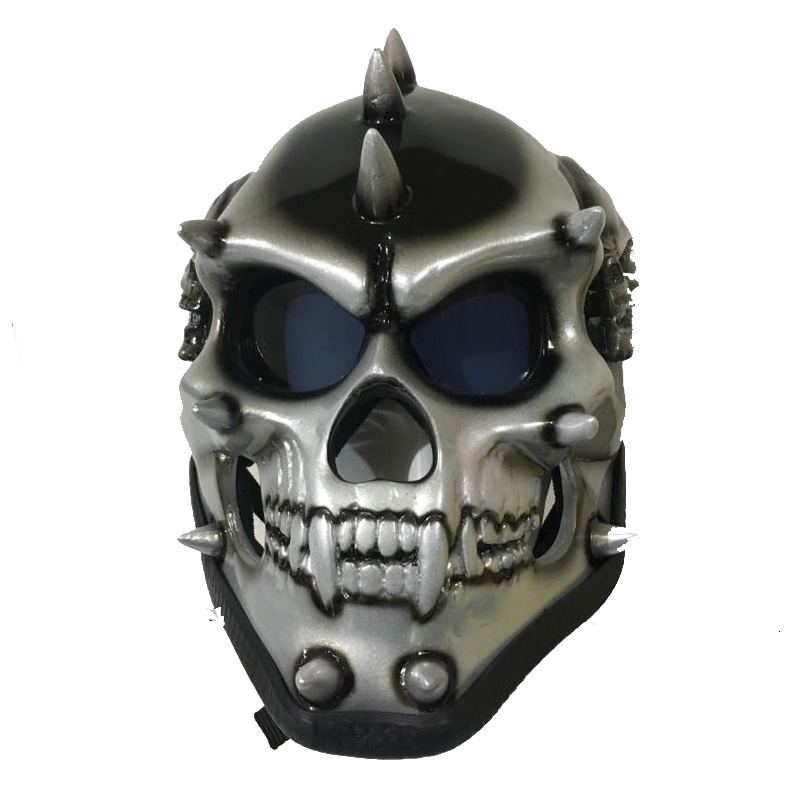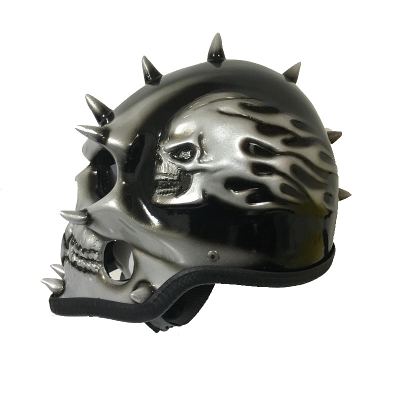 Custom Motorcycle Helmet SILVER Skull Monster Death Shield Ghost Rider Full Face