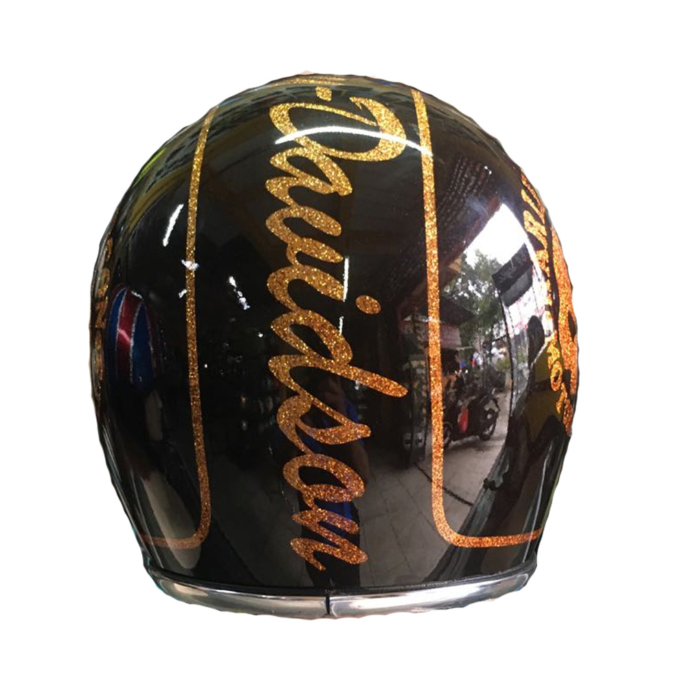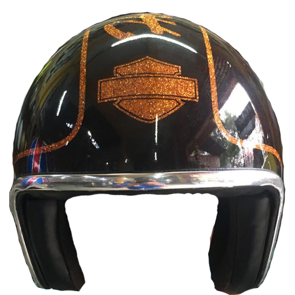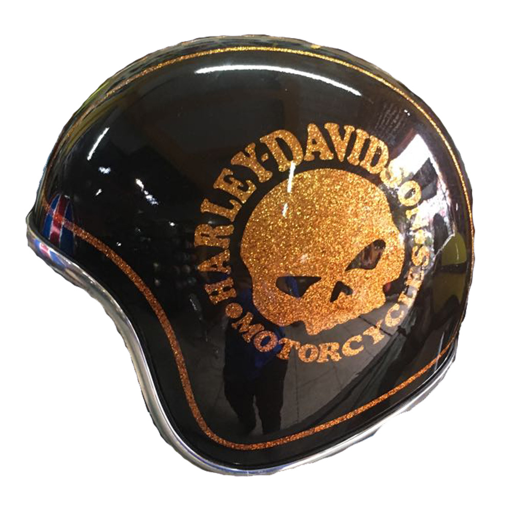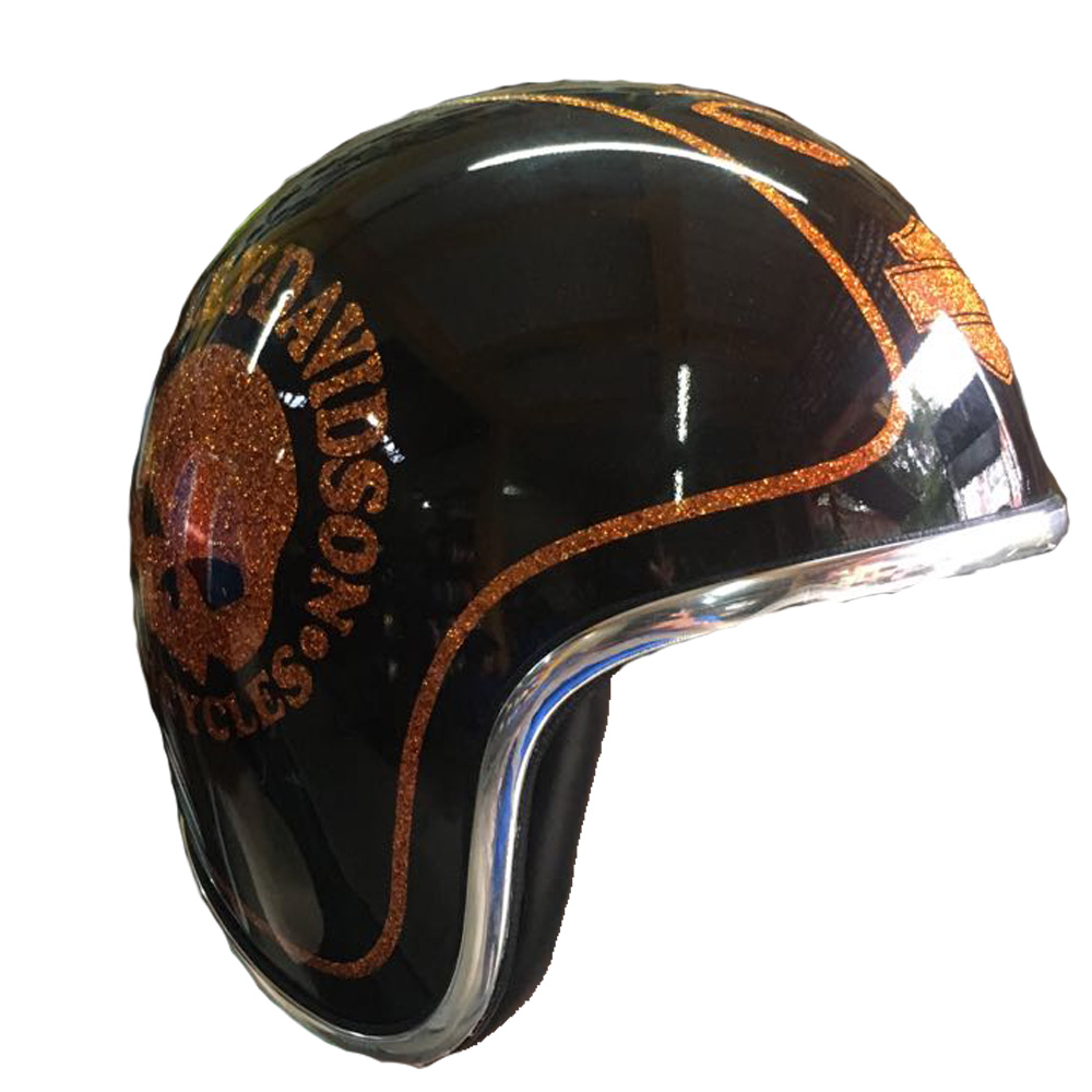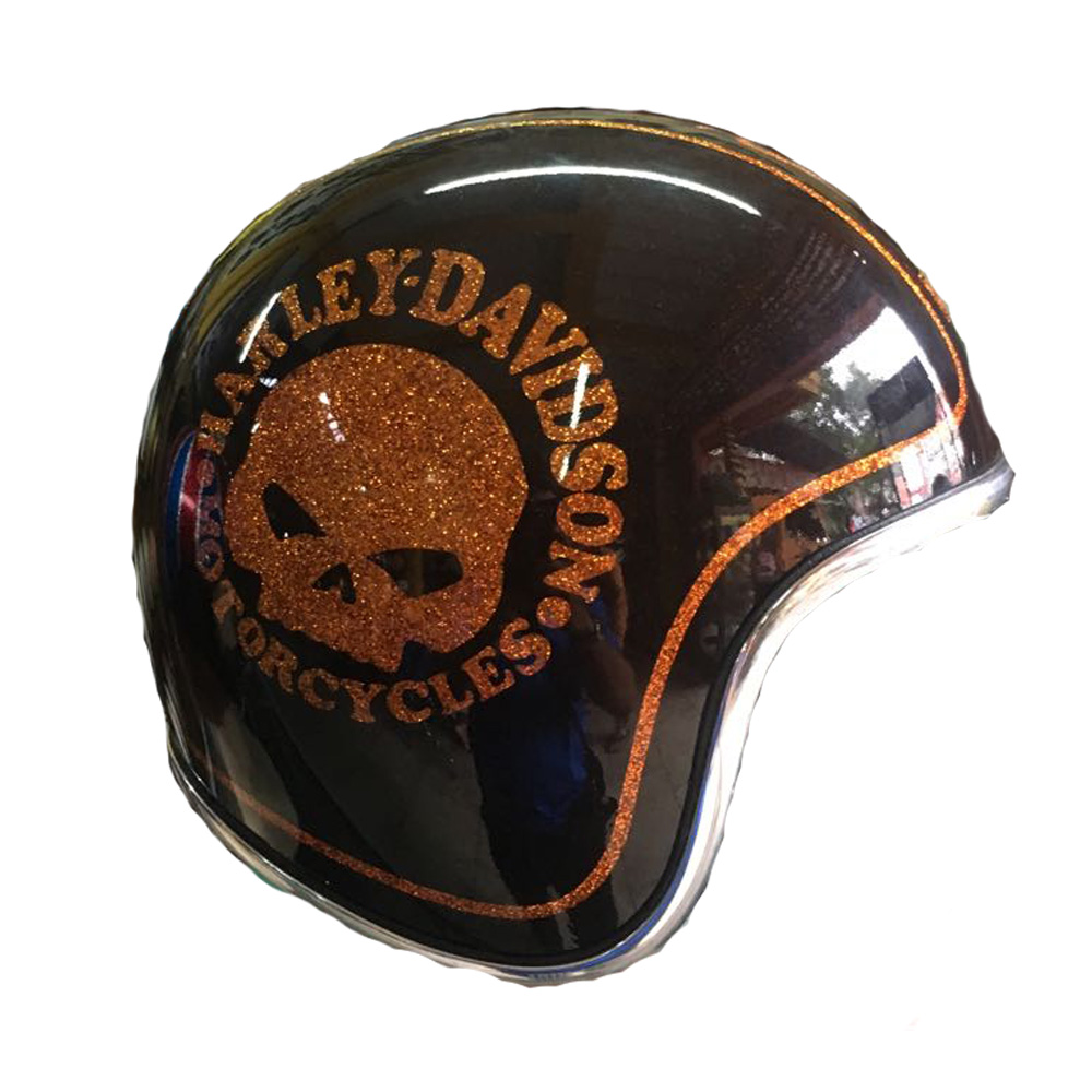 100% handmade of airbrush painted of Skull with Harley Davidson style on the motorcycle helmet and have a look glowing if exposed on the sun. Its suitable for Harley Davidson rider.