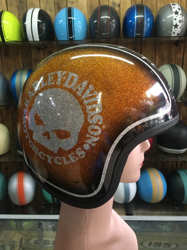 Custom Motorcycle Half Helmet With Harley Davidson Skull AirBrush Painted