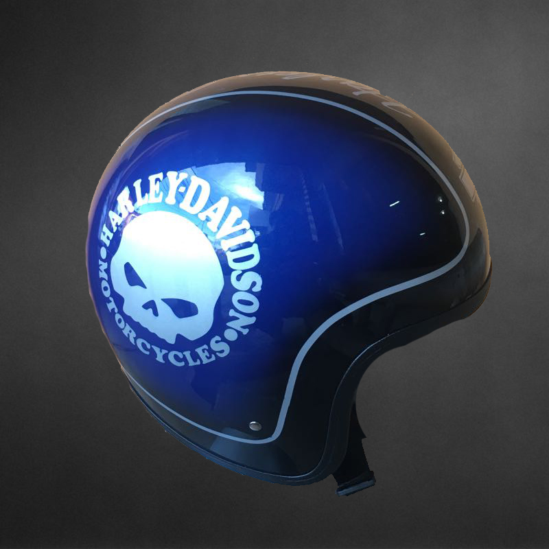 100% Custom handmade of airbrush painted of Skull with Harley Davidson style on the motorcycle helmet and have a look glowing if exposed on the sun. Its suitable for Harley Davidson rider.