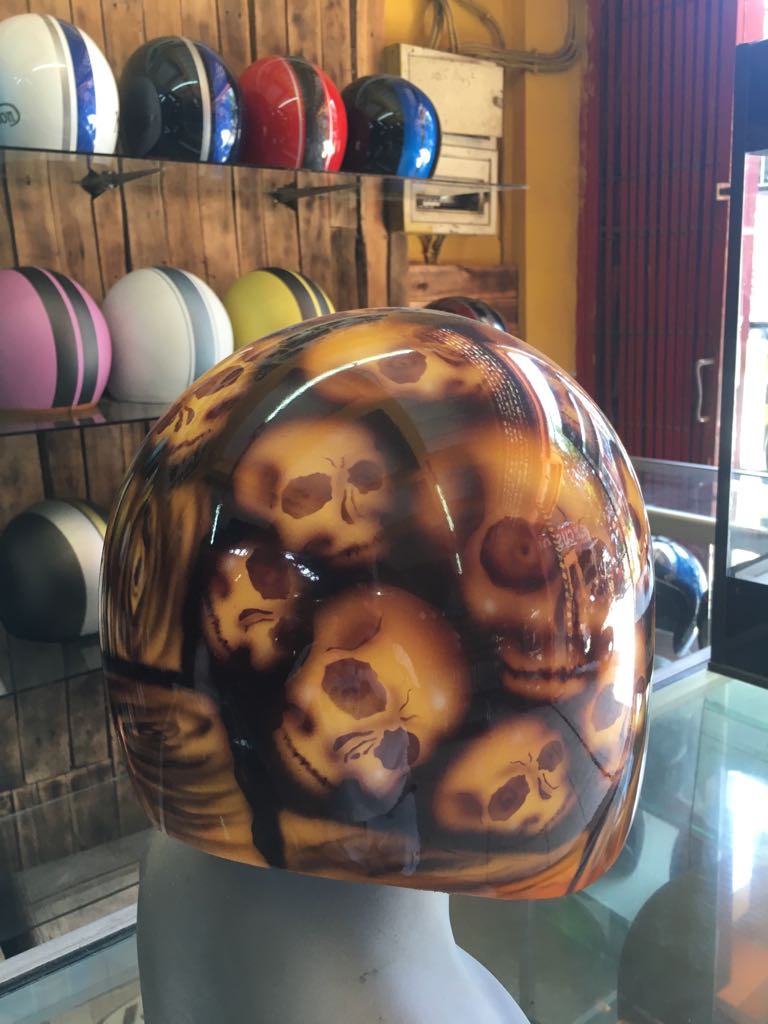 Gold Skull Custom Air Brush Painted Motorcycle Open Face Helmet