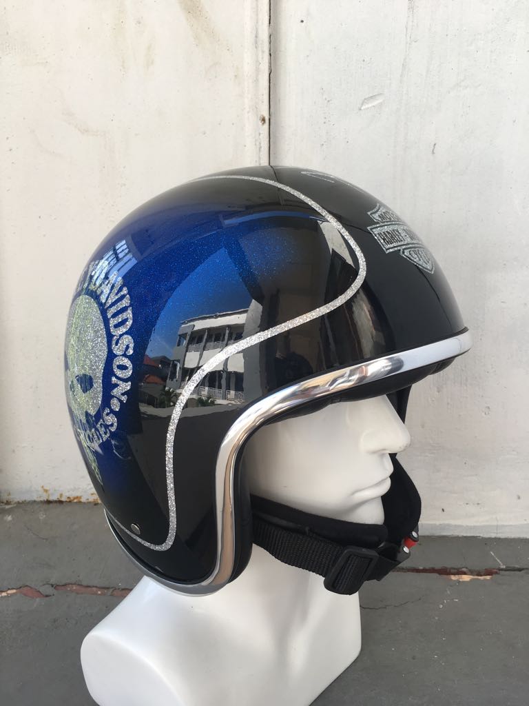 Blue Glitter Harley-Davidson Motorcycle Open Face Helmets - Dark Custom Helmets