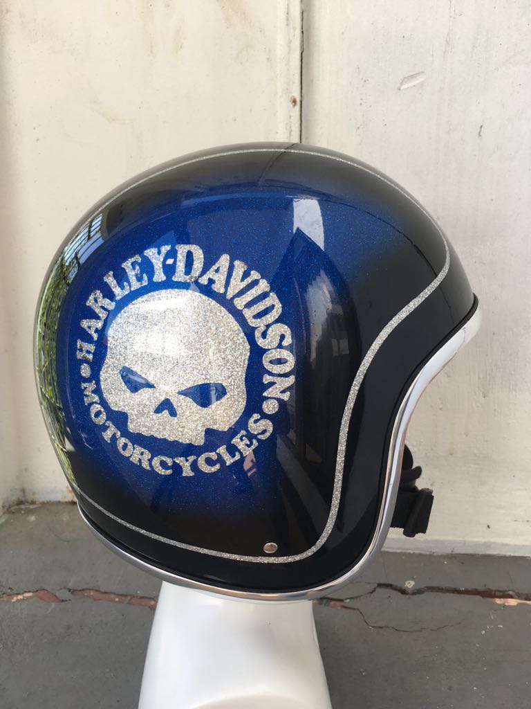 100% Custom handmade of airbrush painted of Skull with Harley Davidson style on the motorcycle helmet and have a look glowing if exposed on the sun. Its suitable for Harley Davidson rider.