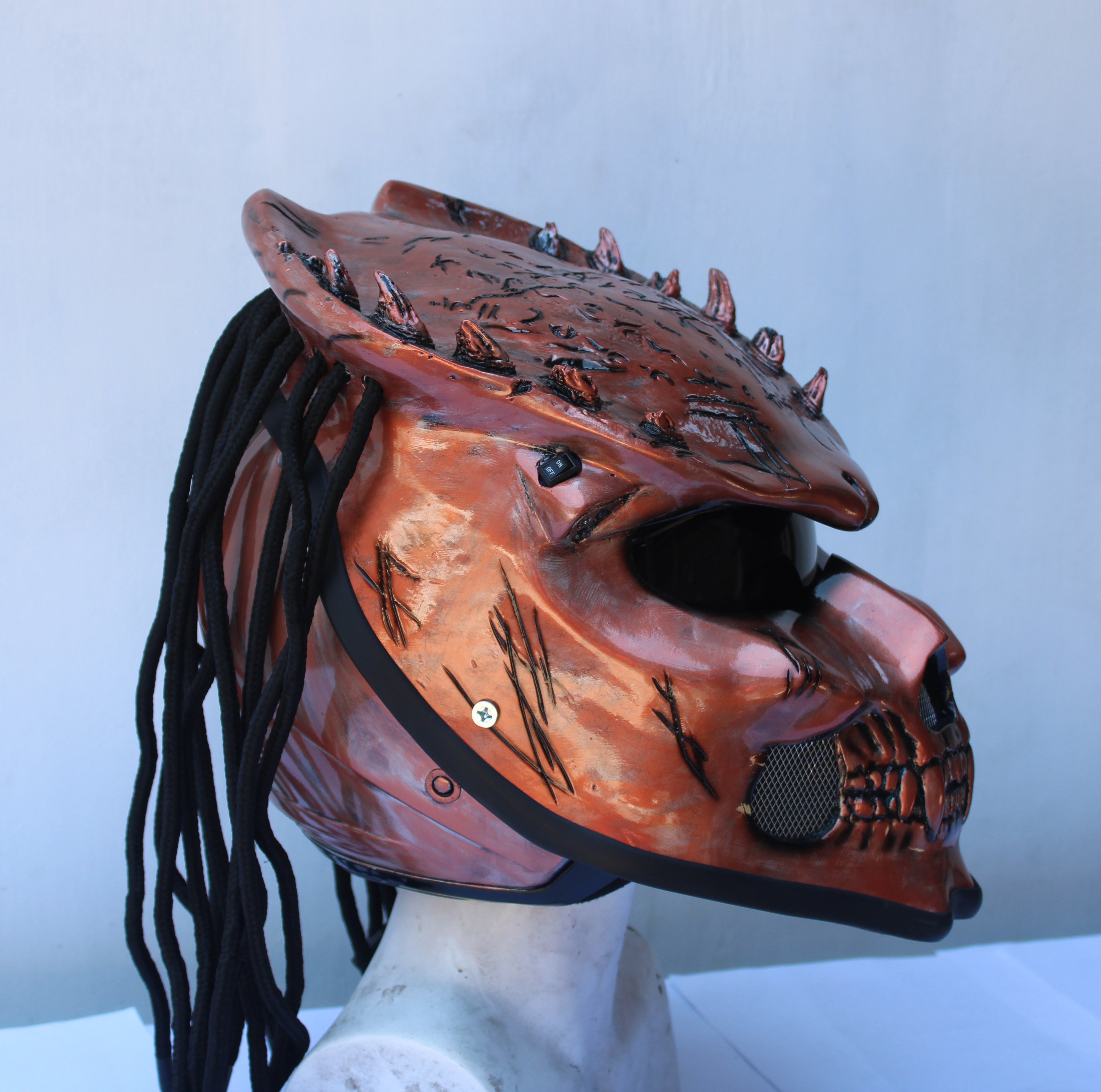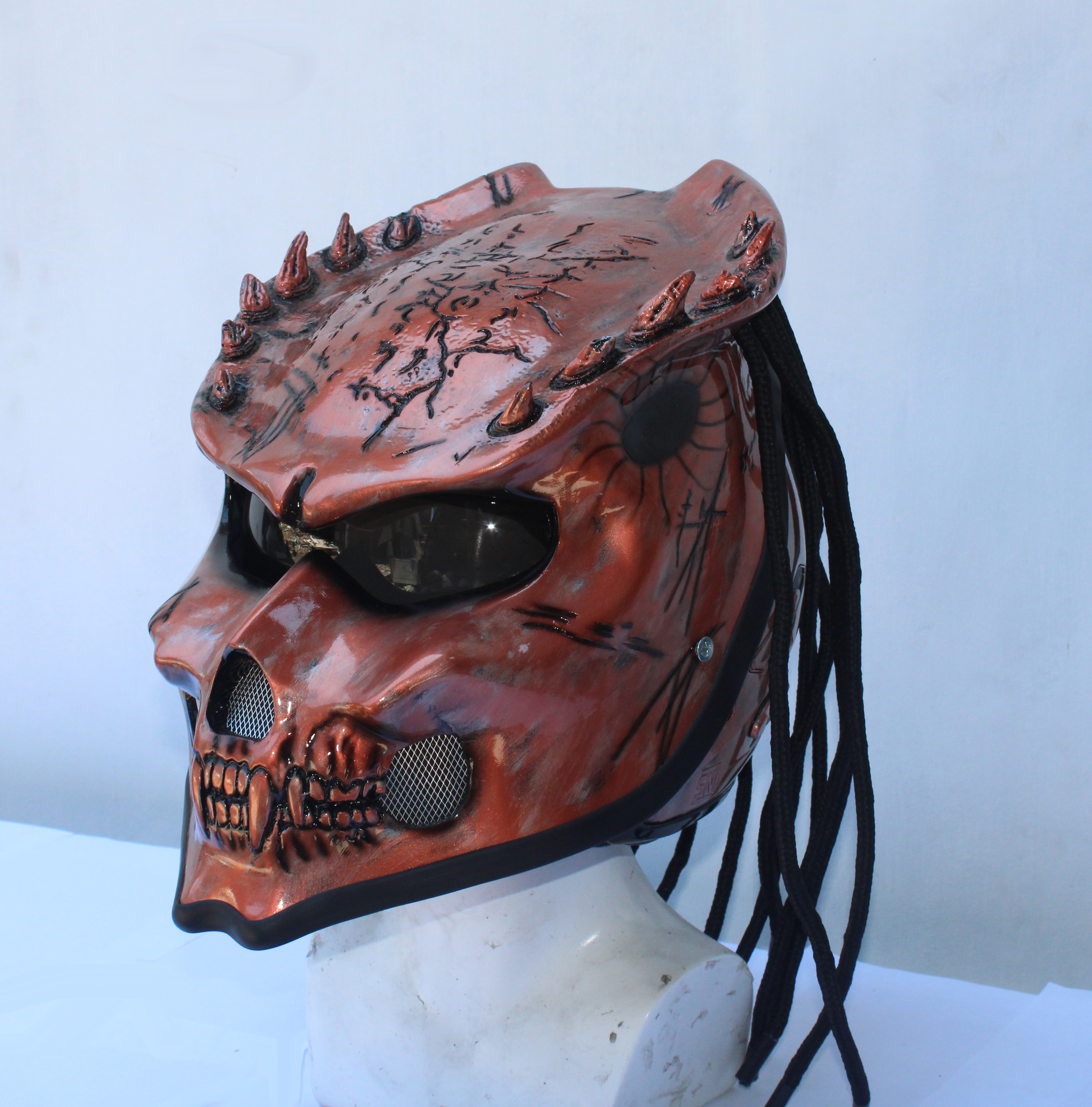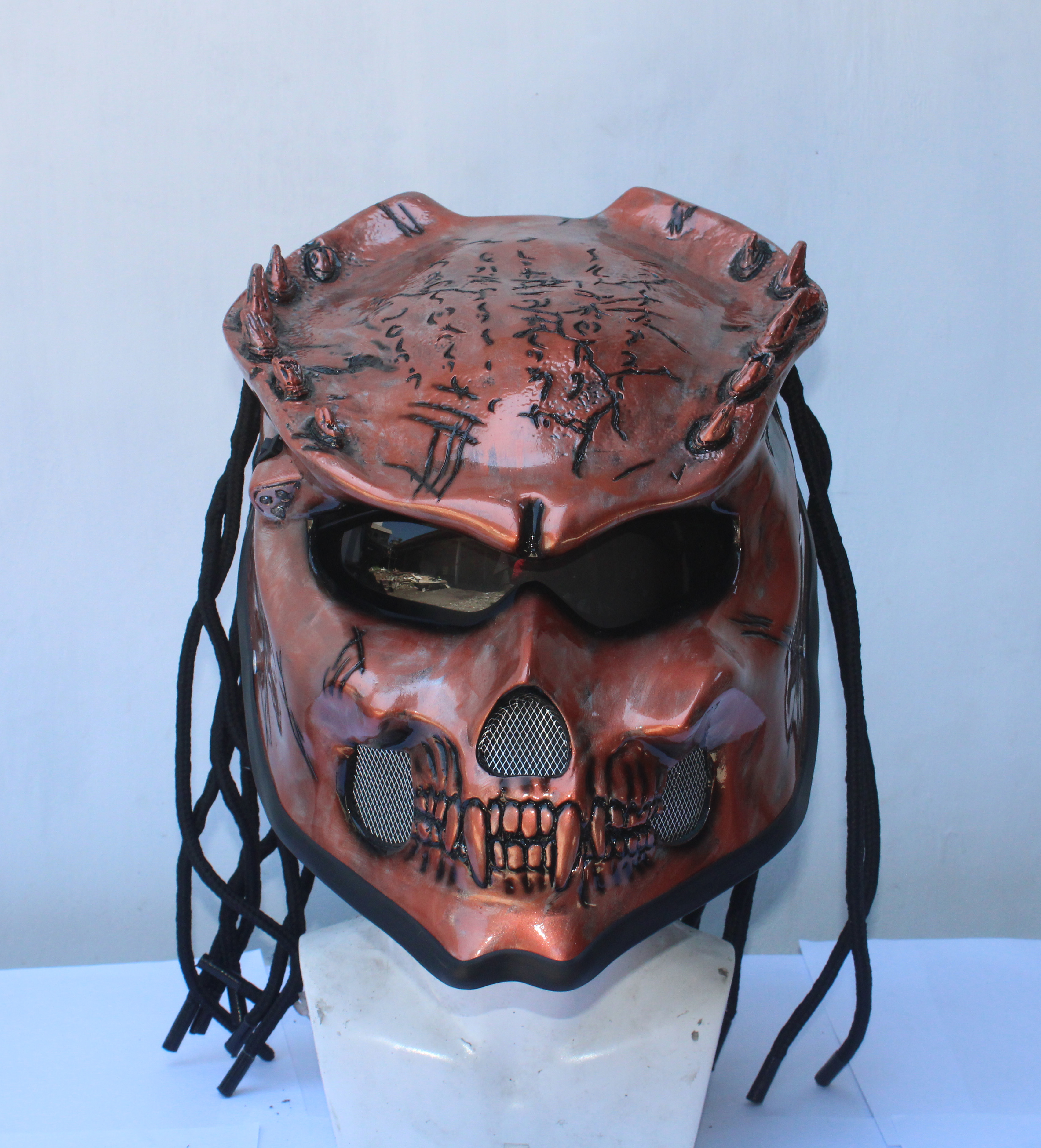 Predator Motorcycle Helmet, Brown Skull Cosplay Helm